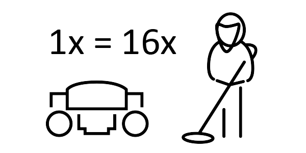 1 Spider ersetzt bis zu 16 Arbeitskräfte mit Motorsensen. Das bedeutet: Ein Mann, eine Maschine, enorme Flächenleistung bis 8.500 m²/h.