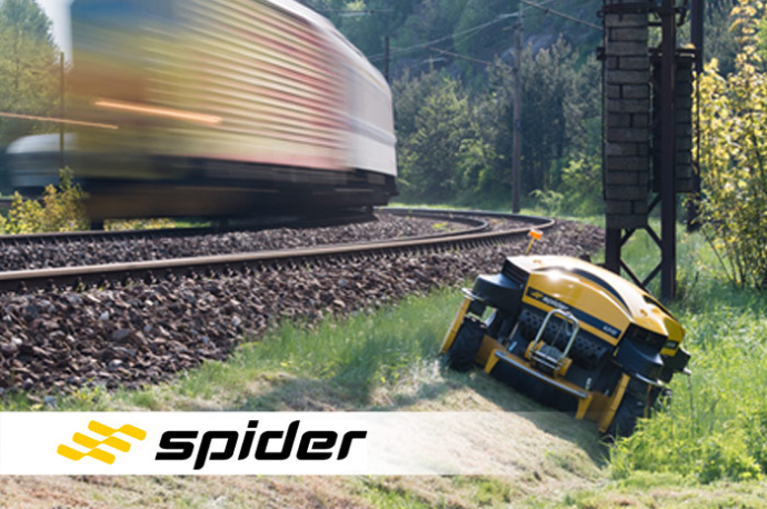 Funkferngesteuerte, professionelle Böschungs- und Großflächenmäher SPIDER mähen Flächen bis zu 8.500 m²/h und Hänge bis 60° Grad.